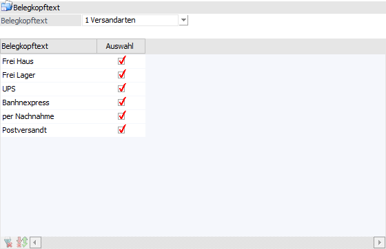 Je nach Auswahl aus der Auswahlliste werden die Belegkopftexte in der Tabelle angezeigt.