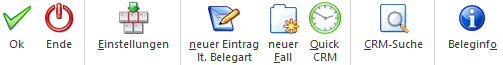 Durch Anwahl dieses Buttons wird das Fenster "Neuer Fall" geöffnet. Der von dort gestartete CRM-Fall wird automatisch mit dem aktuellen Beleg verknüpft.