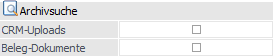 Durch Aktivierung der Option "CRM-Uploads" wird kontrolliert, ob bei den verknüpften CRM-Fällen Uploads vorhanden sind. Ist dieses der Fall, dann wird automatisch die Archivsuche gestartet und die Uploads angezeigt.