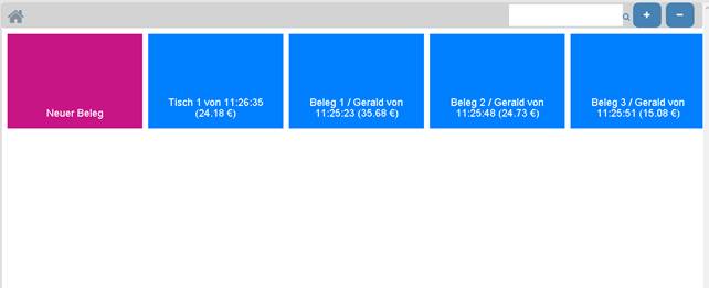 Wenn bei einem Beleg die Vorschau ausgegeben wird, ein Belegwechsel durchgeführt wird oder die Kasse geschlossen wird, wird dieser Beleg gespeichert und bei den geparkten Belegen (Belegwechsel) abgelegt. Bei den geparkten Belegen ist der Belegname, die Uhrzeit, welcher Benutzer diesen Beleg zuletzt bearbeitet hat und der Kunde (wenn ein Kundenwechsel durchgeführt wurde) sichtbar. Beim erneuten Öffnen der Kasse können diese Belege als geparkte Belege wieder angezeigt und weiter bearbeitet werden. Die Anzahl der geparkten Belege sind beim Button Belegwechsel als zahl sichtbar.