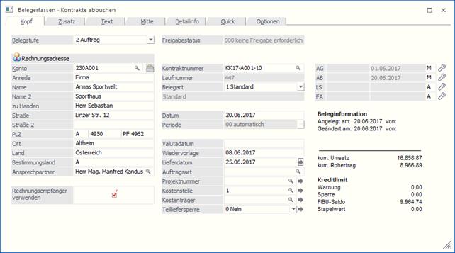 Als Laufnummer wird jene Nummer angezeigt, mit der der Kontrakt(-Beleg) erstellt wurde.