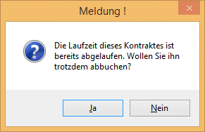 Wird die Meldung mit "Ja" bestätigt, so kann der Kontrakt trotzdem abgebucht werden