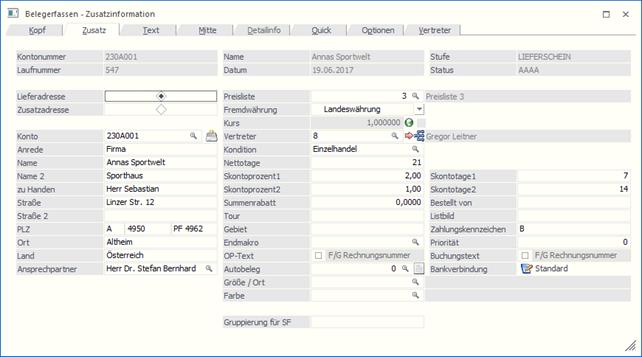 Die weiteren Eingabefelder in diesem Fenster entsprechen jenen aus dem "normalen" Belegerfassen.