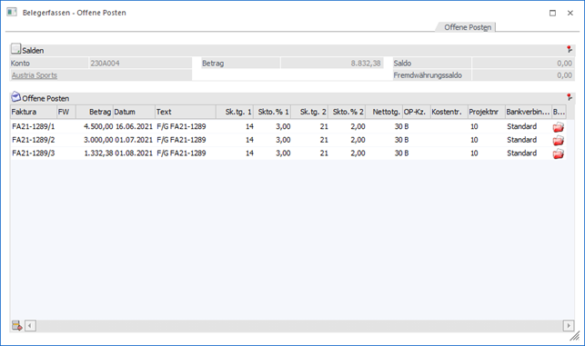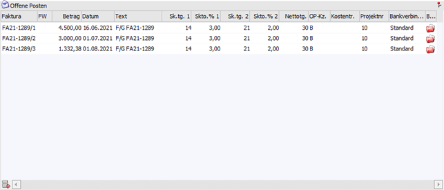 Mit Hilfe der Tabelle "Offene Posten" können die Änderungen am Offenen Posten vorgenommen werden.