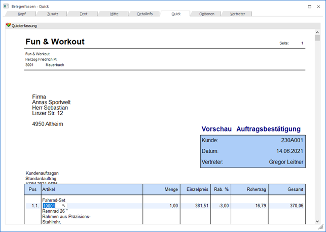Sie können wahlweise zwischen der Beleg Mitte und dem Quick Erfassen wechseln. Die eingegebenen Werte werden Ihnen mit der Ansicht mit übernommen.
