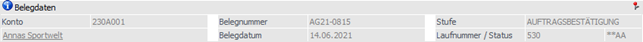 Hier wird die Laufnummer, sowie der Staus des Beleges und dessen Folgestufen angezeigt.