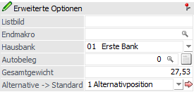 Die Funktion "Alternative -> Standard" steht nur zur Verfügung, wenn zumindest eine Position in der Belegmitte auf alternativ (Spalte "Alternativposition" => 1 bis 9) definiert wurde.