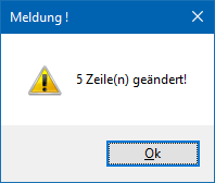 Nach durchgeführter Umstellung wird ein Hinweis bezüglich der geänderten Belegzeilen angezeigt: