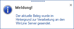 Wenn diese Option aktiviert ist, wird der Beleg nicht direkt innerhalb der WinLine gedruckt, sondern der Belegdruck wird als Hintergrundprozess an den WinLine Server übergeben. Dieses hat den Vorteil, dass direkt weitergearbeitet werden kann.