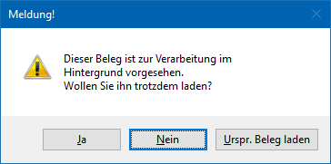 Wenn ein für den Hintergrunddruck vorgesehener Beleg geladen wird, erscheint eine Meldung, dass dieser für den Hintergrund vorgesehen ist:
