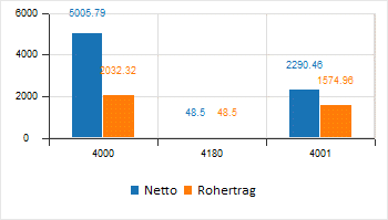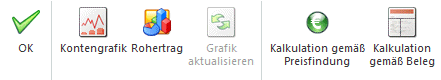 Durch Anwählen dieses Buttons - dieser bleibt so lange gedrückt bis er erneut angewählt wird - wird im Fenster der Belegkalkulation eine Balkengrafik mit den Nettowerten der verwendeten Erlöskonten sowie des Rohertrages dargestellt.