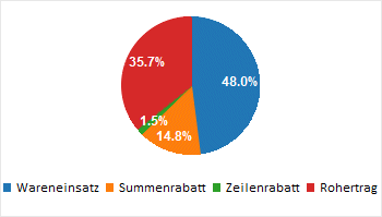 Durch Anwählen dieses Buttons - dieser bleibt so lange gedrückt bis er erneut angewählt wird - wird im Fenster der Belegkalkulation eine Tortengrafik mit den Werten Wareneinsatz, Summenrabatt, Zeilenrabatt und Rohertrag dargestellt.