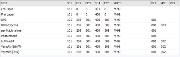 In diesen Spalten können pro Text bis zu 3 Funktionscodes zugeordnet werden. Diese Funktionscodes werden für die Intrastat verwendet.