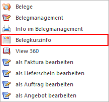 Die Belegkurzinfo stellt alle relevanten Informationen - bezogen auf einen Beleg - bereit. Der Aufruf der Kurzinfo findet über den Beleg-DrillDown statt.