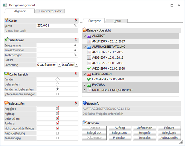 … erhält man einerseits eine umfangreiche und detaillierte Übersicht über die bestehenden Belege und andererseits die Möglichkeit, diese Belege einfach und schnell zu stornieren, kopieren, drucken, usw.
