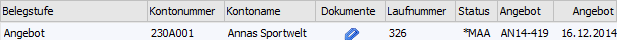 Wenn zu einem Beleg externe Dokumente hinterlegt wurden, dann wird hierauf in Form eines Icons hingewiesen.