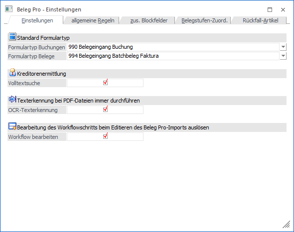 Das Fenster "Beleg Pro - Einstellungen" wird geschlossen.