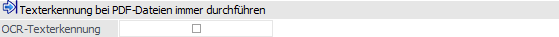 Bei Aktivierung dieser Checkbox wird bei jedem eingehenden Dokument über Beleg Pro eine OCR-Erkennung durchgeführt, unabhängig davon, ob das PDF-Dokument bereits "durchsuchbar" (enthält markierbaren Text) ist oder nicht.