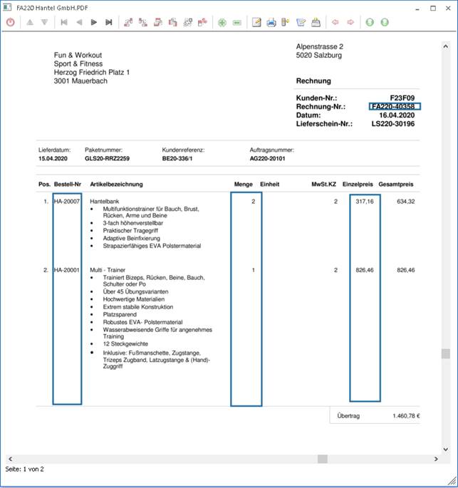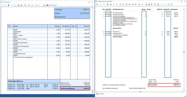 Diese Funktion kann genutzt werden, um beispielsweise den Endbetrag der Eingangsrechnung mit der zu druckenden zu vergleichen.