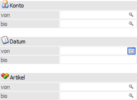Hier kann eine Einschränkung auf einen Datumsbereich vorgenommen werden. Bei gedruckten Belegen wird als Datum das Belegdatum der letzten gedruckten Stufe, bei nicht gedruckten Belegen das Erstellungsdatum berücksichtigt.