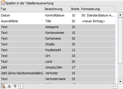 Durch Anwahl dieser Buttons kann die Reihenfolge der Spalten angepasst werden.