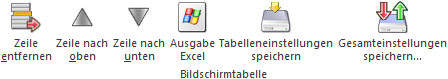 Tabellenbuttons "Spalten in der Tabellenauswertung"