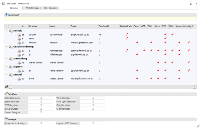 Wenn diese Option aktiviert wurde, so werden in der Tabelle des Suchergebnisses neben den WinLine Benutzern auch alle WEB Benutzer dargestellt.