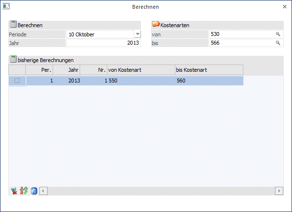 Eingabe der Periode, für die die Kostenart berechnet werden soll. Als Buchungsdatum wird jeweils der letzte Tag der selektierten Periode verwendet.