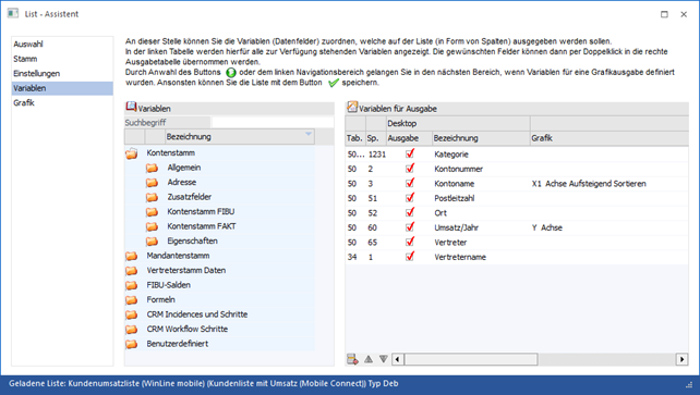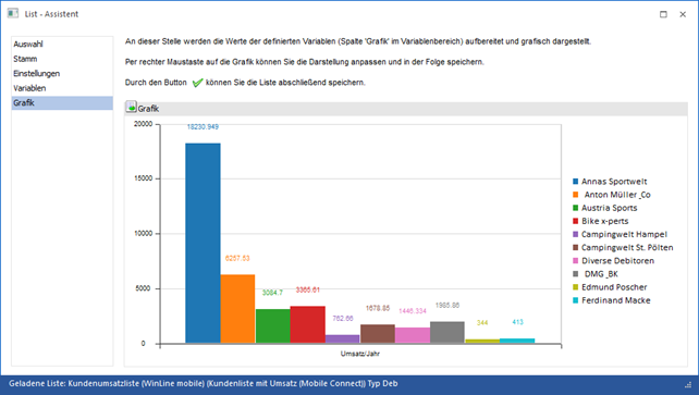 Im Bereich "Grafik" kann eine Auswertung in Form einer Grafik angezeigt werden, wenn im Bereich "Variablen" die entsprechenden Einstellungen vorgenommen wurden. Diese Einstellung ist in weiterer Folge auch für den Einsatz der Power Reports von Bedeutung.