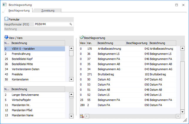 Die Information "Auftragsnummer" hat die Kombination "25/044". Soll ein Beleg durch Eingabe der Auftragsnummer im Archiv zu finden sein, soll muss z.B. dem Schlagwort "044 - Belegnummer AB" die Variable "25/044 - Auftragsnummer" zugeordnet werden.