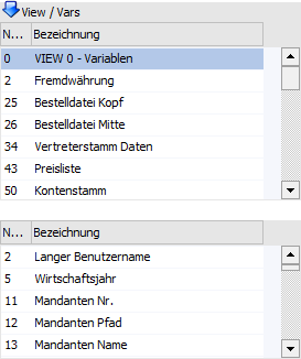 Tabelle "View / Vars"