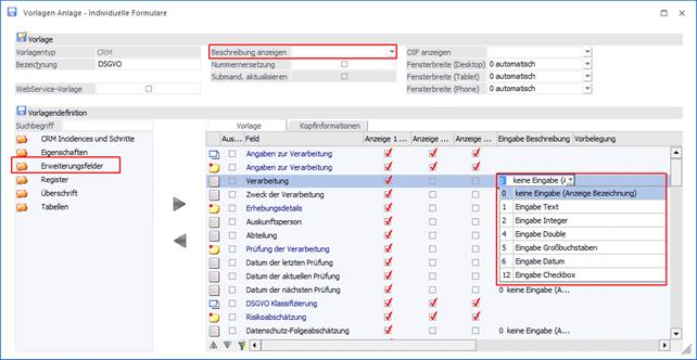 Zusätzlich kann zu den Erweiterungsfeldern ein Beschreibungstext hinterlegt werden. Bei den Beschreibungsfeldern stehen folgende Formatierungen zur Verfügung: