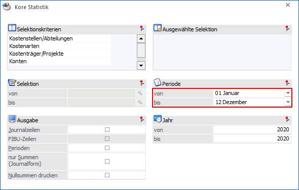 In der Auswahlbox aller Auswertungen steht auch der Eintrag "99 - aktuelle Periode" zur Verfügung. Falls dieser Eintrag gewählt wurde, wird bei der Vorschau des Reports bzw. beim Erzeugen des Reports die Periode mit der Periode des aktuellen Systemdatums belegt.