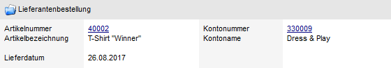 In diesem Bereich wird Auskunft über den aktuellen Artikel, das geplante Lieferdatum (gemäß Bestellvorschlag) und den Lieferanten gegeben.