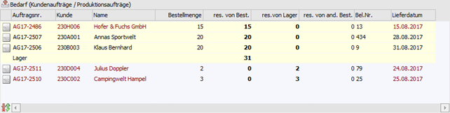 ü Kunden-, Produktions- bzw. Fertigungsaufträge für welche bereits eine Reservierung von der Bestellmenge vorliegt (aufsteigend nach Lieferdatum / Produktionsdatum)