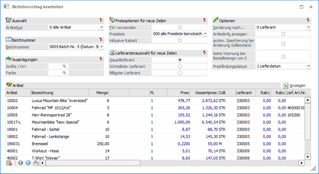 Bestellvorschlags angezeigt.