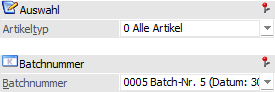 Durch Bestätigen der Batchauswahl wird die Batchnummer automatisch geladen und der Fokus in die Tabelle "Artikel" gelegt.