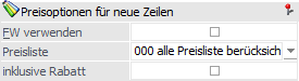 An dieser Stelle kann die zu nutzende Preisliste definiert werden. Durch Änderung der Preisliste wird automatisch nach einem neuen Preis gesucht und dieser (falls vorhanden) eingetragen.