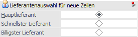 Lieferantenauswahl für neue Zeilen