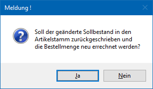 hingegen mit "Nein" bestätigt, dann wird wieder die alte Soll-Menge wieder in