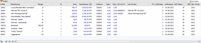 ü Die Zeilen werden so eingefügt, als ob sie neu erfasst wurden, d.h. Datenfelder wie "Preis" und "Lieferant" und "Colli" etc. werden zurückgesetzt (d.h. nicht übernommen).