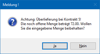 ü Mit der Option "Nein" wird die Menge auf die noch offene Kontraktmenge gesetzt