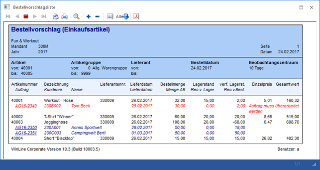 1 Bestellvorschlag erstellen