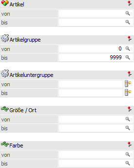 In diesen Feldern kann nach den Artikelgruppen eingeschränkt werden, welche in dem Bestellvorschlag berücksichtigt werden sollen.