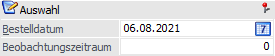 In diesem Feld erfolgt die Eingabe des Bestelldatums. Anhand dessen (ggfs. + Beobachtungszeitraum) wird der tatsächlich verfügbare Lagerstand berechnet, wobei der Lagerstand und alle bis einschließlich des Datums anstehenden Produktionen, sowie Ein- und Verkäufe (inklusive nicht gedruckter Einkaufsdispositionen) berücksichtigt werden. Des Weiteren werden die Wiederbeschaffungstage des Lieferanten analysiert.