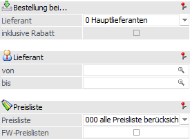 Ein Bestellvorschlag kann für eine Komponente nur dann ausgelöst werden, wenn im Artikelstamm zumindest 1 Lieferanten-Preislisteneintrag mit folgenden Daten vorhanden ist: