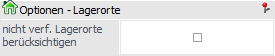 Im Standard wird der Bestand von nicht verfügbaren Lagerorten bei der Berechnung der verfügbaren Menge ignoriert, d.h. abgezogen. Mit Hilfe der Option "nicht verf. Lagerorte berücksichtigen" kann dieses deaktiviert werden.
