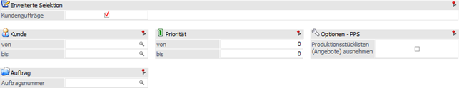 Durch die Aktivierung der Option "Kundenaufträge" stehen weitere Selektionsfelder zur Verfügung.