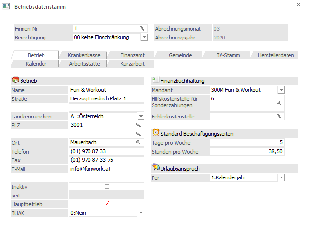 Pro Mandant können beliebig viele Firmennummern vergeben werden, die als Kostenstellen behandelt werden. In der Firmennummer 1 werden die betriebswichtigen Daten erfasst.