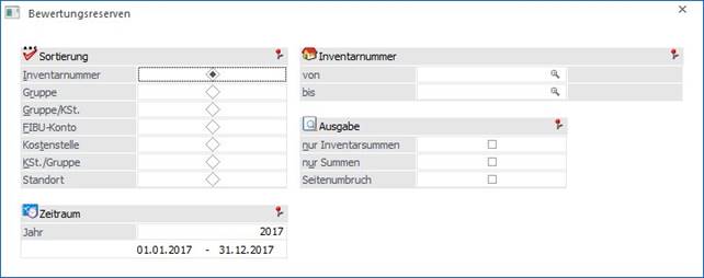 Um eine Übersicht der in den Anlagegütern vorhandenen Bewertungsreserven (entstanden aus vorzeitiger AfA oder stiller Reserve) zu erhalten, wählen Sie den Menüpunkt